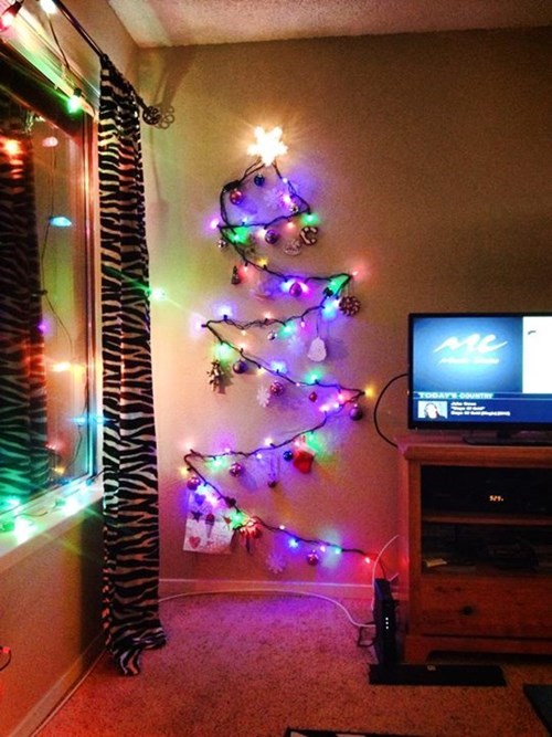 No Space For A Tree We Hung Garland And Lights On Our Wall