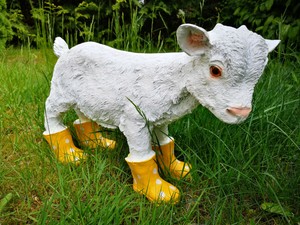 Dekofigur Gartenfigur Zicklein Lustige Ziege Mit Gummistiefeln Gelb 3169 Ebay