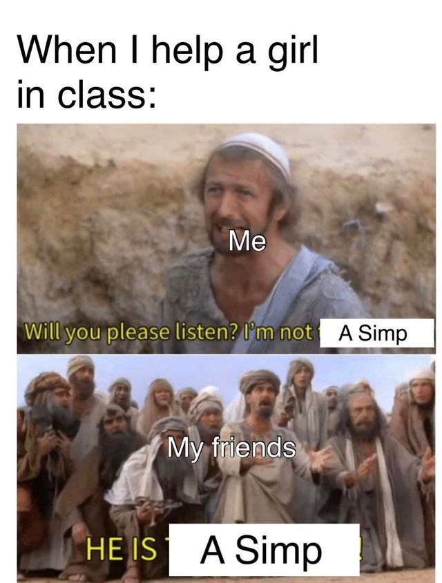Take a look at this simp meme. What is the meme generator. In today s reaction commentary we take a look at a video called i made a song about being a simp by madyock i actually quite like this guy s content he seems to hate commentary channles like. It s brief punchy and straightforward to pronounce. Let s take a look at the x rays popular memes on the site ifunny co. We collected some of the funniest fashion memes below. The 355 has started to appreciate the 355 is about 25 years old. In this video i take a look at why idubbbz is a simp a simp is someone who pretty much worships a woman the ok boomer girl has alot of simps idubbbz girlfriend made an onlyfans this is why.